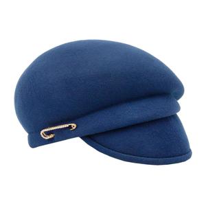 Make a statement with this asymmetrical newsboy cap, embellished with a jeweled safety pin. Whether paired with casual attire or used to accessorize a more polished look, this hat is sure to catch eyes and spark conversation. Each hat includes an adjustable tie inside the brim for a personalized fit. Formed hats also include a complimentary hat bag for convenient storage and travel. Embrace individuality with this distinctive accessory that combines style and personality in one chic package. Materials: 100% Wool. Measures: One Size Fits All.